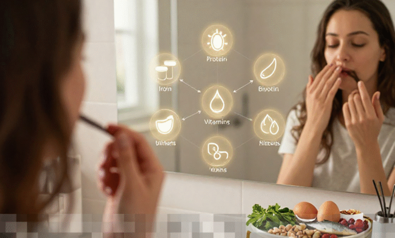 Beberapa nutrisi memiliki peran krusial dalam menjaga kesehatan kuku dan rambut. Protein adalah komponen utama dari keratin, substansi yang membentuk struktur rambut dan kuku. Kekurangan protein dapat menyebabkan kedua elemen ini menjadi rapuh dan mudah patah. Zat besi berfungsi untuk mendistribusikan oksigen ke sel-sel tubuh, dan kekurangannya dapat berakibat pada rambut yang rontok serta kuku yang tampak pucat.